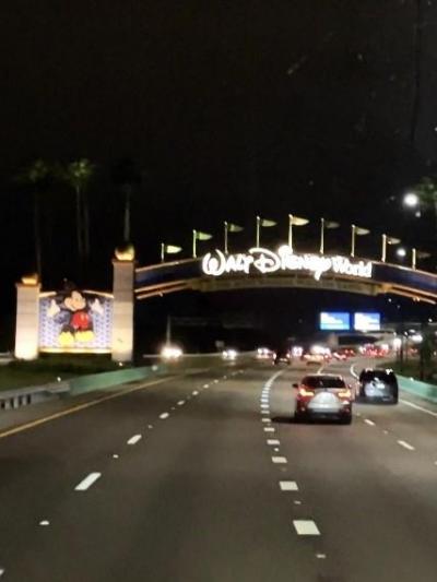既に外は真っ暗でしたが途中WDWへ敷地へ入るゲート(ディズニーサイン)をくぐる際、運転手がアナウンスしてくれました。