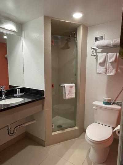 - シャワーのみ、シャワー室が明かりがなく狭いので大きな人は不便かも、明かりはバスルームの照明で問題ない