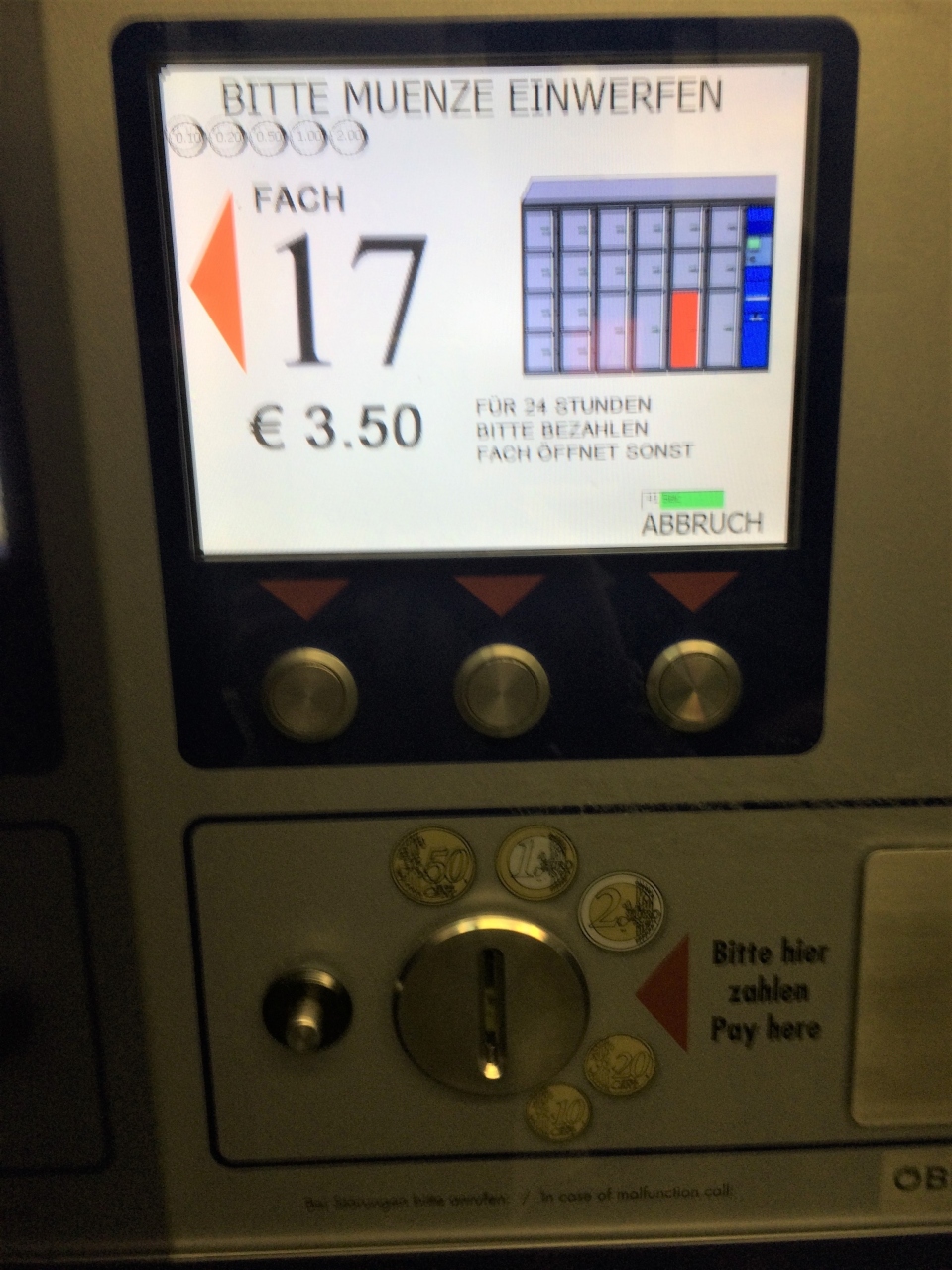 一番大きなロッカーに入れましたが3.5ユーロ。