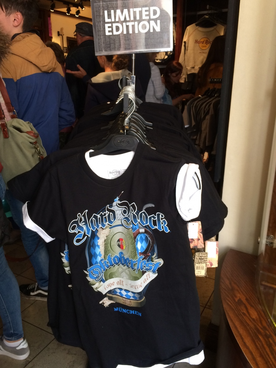 ハードロックカフェでオクトーバーフェストのロゴが入った限定Tシャツとピンバッチをお土産に!