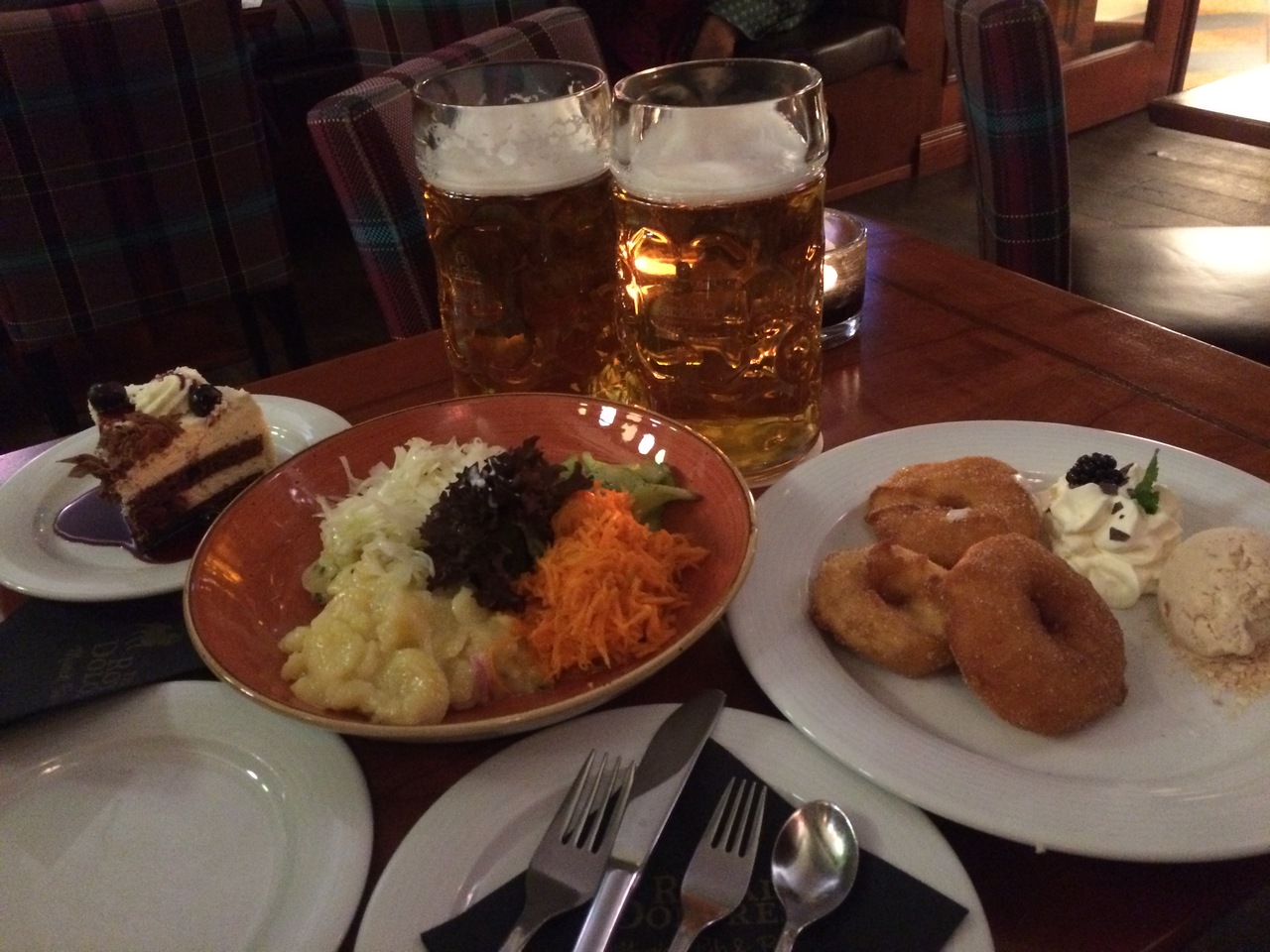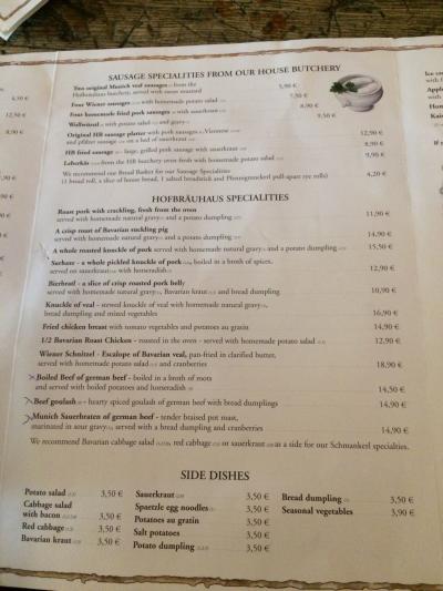 生演奏があり、大勢のお客さんで賑わっているので、知らない人とでも気軽に話せる雰囲気があって、どこから来たとか、ミュンヘンに何日間いるとか・・・、世界中から集まる観光客同士でちょっとした会話をしながら楽しく食事ができました。