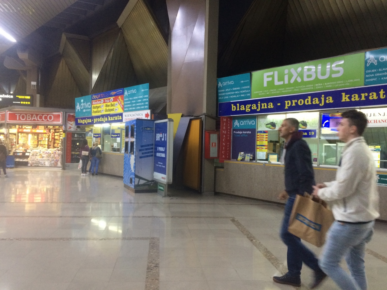 ザグレブからのバスはまず入口1、その後入口2の順に停車します。