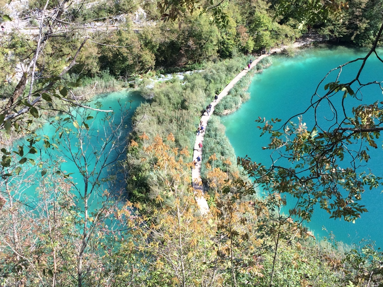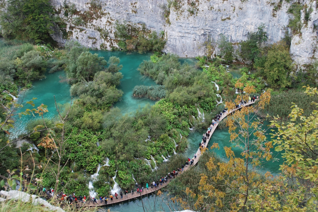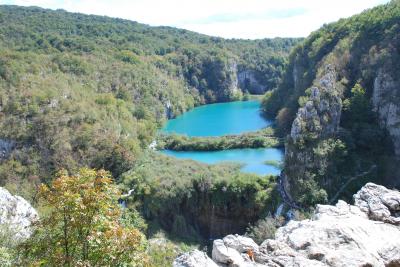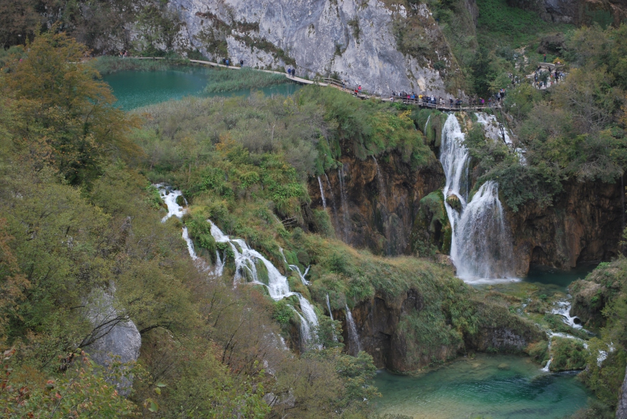 もし時間があれば、代表的なプリトヴィッツェ滝手前の左の階段を上がって右へ進み滝の上側を通って下湖群が一望できる場所へ行ってみてください。