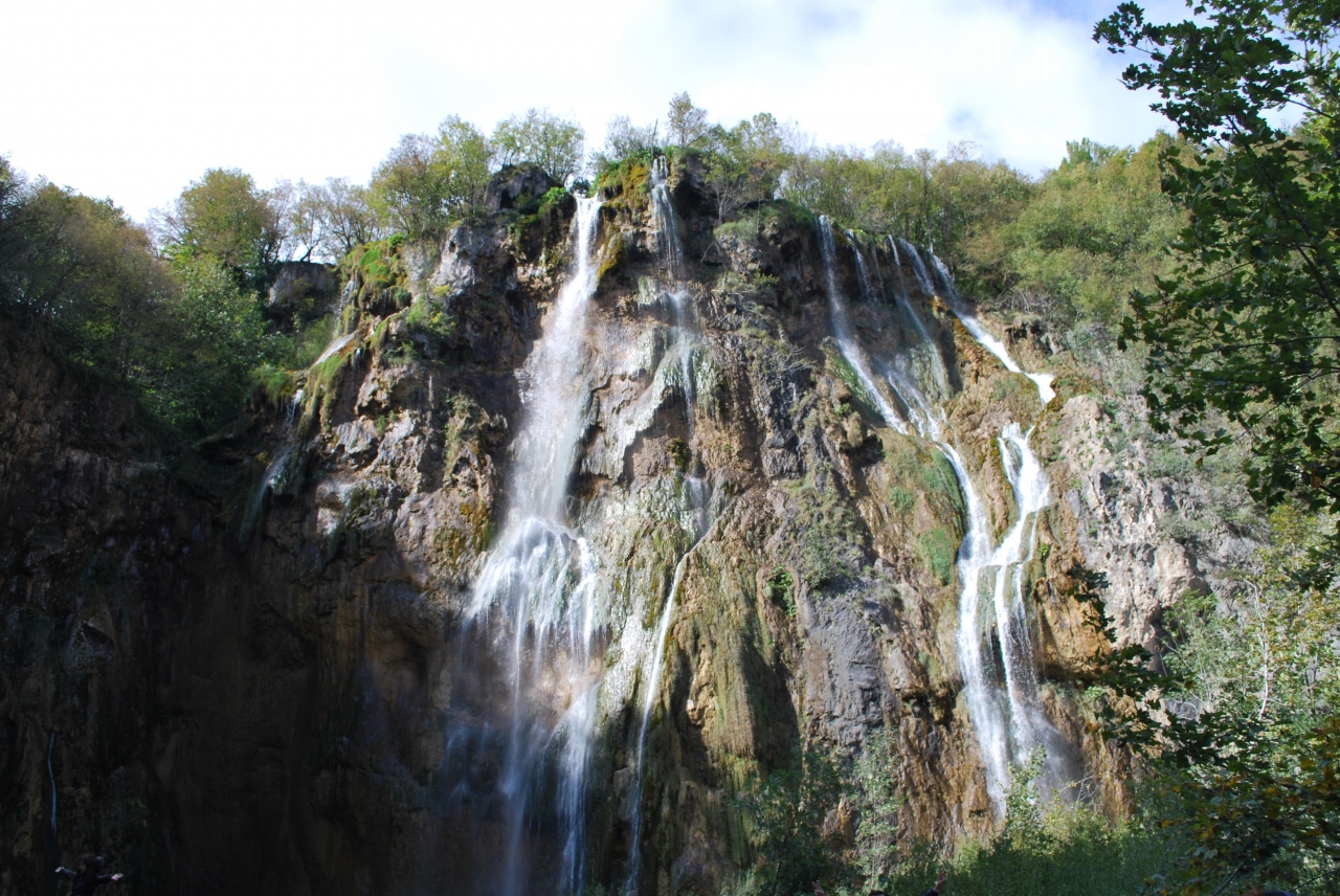 案内板もなく、かなり分かりにくい場所ですが、ガイドブックなどで紹介されるエメラルドグリーンの湖の間から大小の滝が溢れるように流れている写真と同じ景色が見られて感動します。