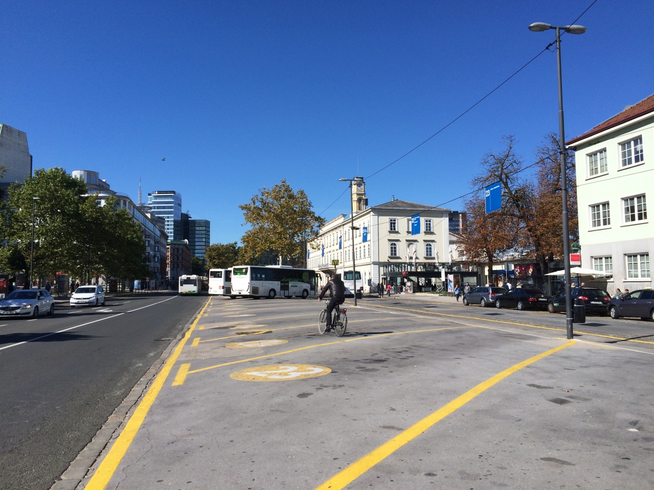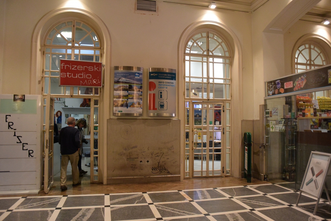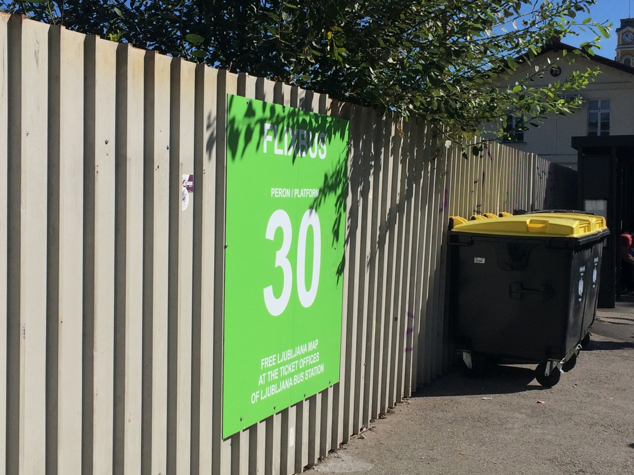 鉄道リュブリャナ駅の線路沿いの道に長距離バス会社のバス停があります。