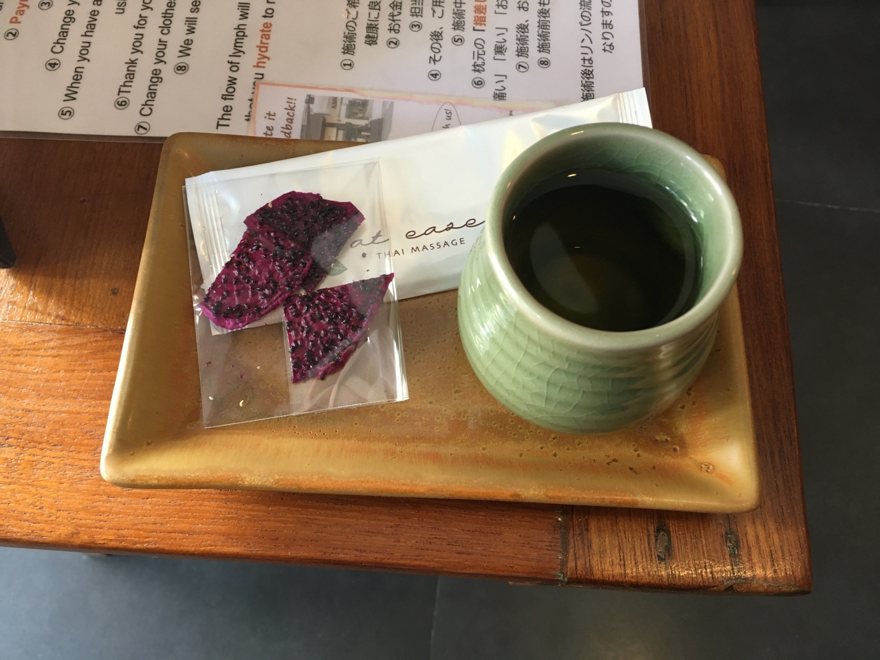 入店後にお茶をいただき、質問にいくつか回答、その後に足裏、終わってからもお菓子とお茶をいただきました。