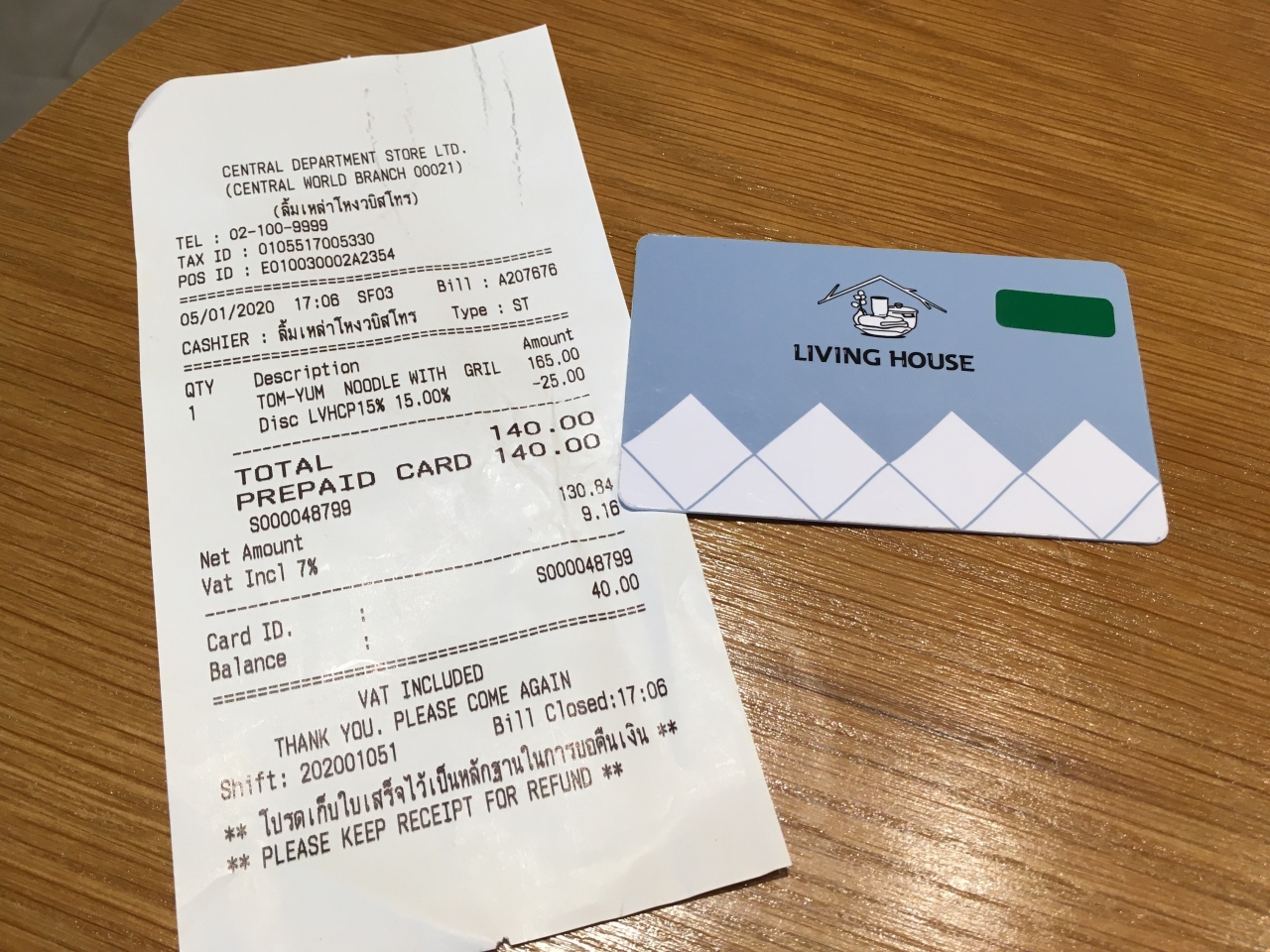 フードコートは先にカードを購入し、買ったら当日中に残りを返金してもらう仕組みですが、精算に行ったら140バーツ(約500円)に割引されてました!