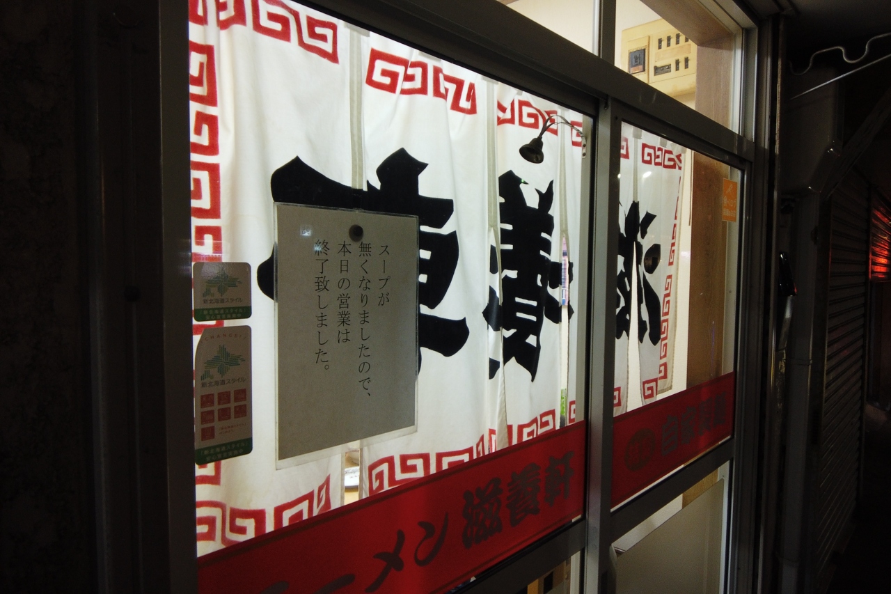 お店を出るとドアに「スープが無くなりましたので、本日の営業は終了致しました。」の貼紙。