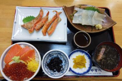 手前は海産物、奥の大きな店舗は各種お土産を販売しています。