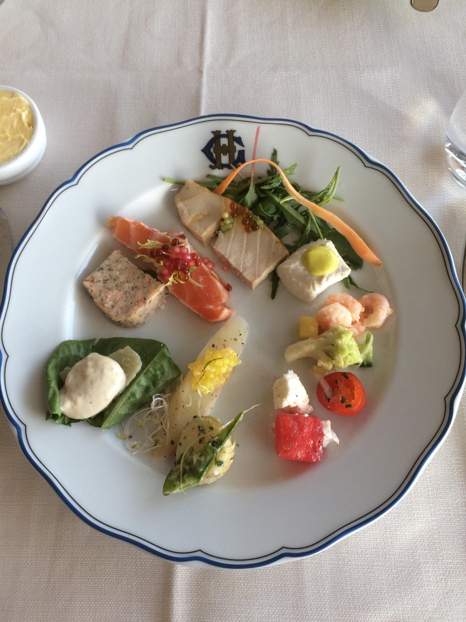 ノーベル賞受賞者が宿泊する事で有名なグランドホテルにあるレストラン「ヴェランダ」で、スウェーデンの伝統料理スモーガスボードを食べました。