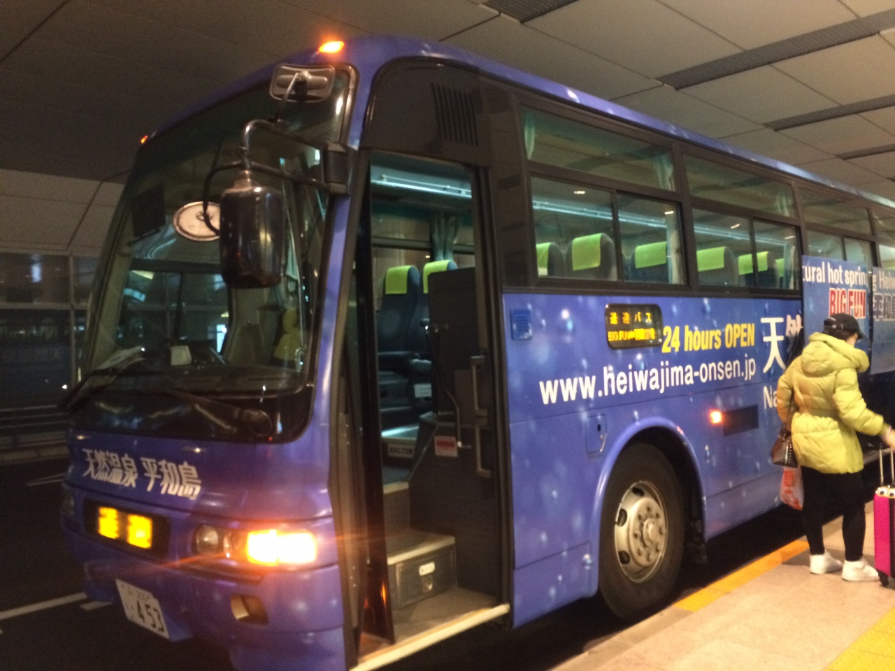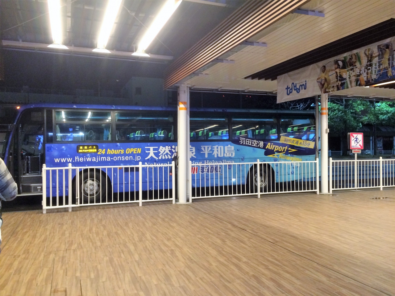 朝は出発10分前に運転手が温泉入口で予約人数を確認、全員揃って出発時間より早く出発し約15分で羽田国際線に到着。利用客は4時発のバスで9名。