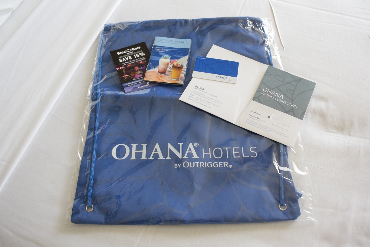 ・OHANAホテル特製のナイロン製巾着ビーチバッグ(1室あたり1点。ビーチで活躍しました)