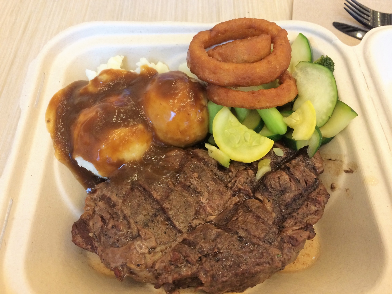 初めてでステーキプレートの量が分からず①170g9ドルにして部屋で食べました。