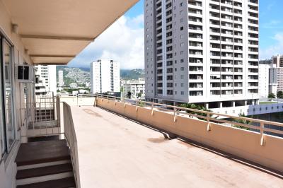 建物の通路はダイアモンドヘッド側で、ラナイはヒルトン側になります。