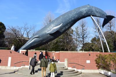 外に大きなシロナガスクジラがいる国立科学博物館。
