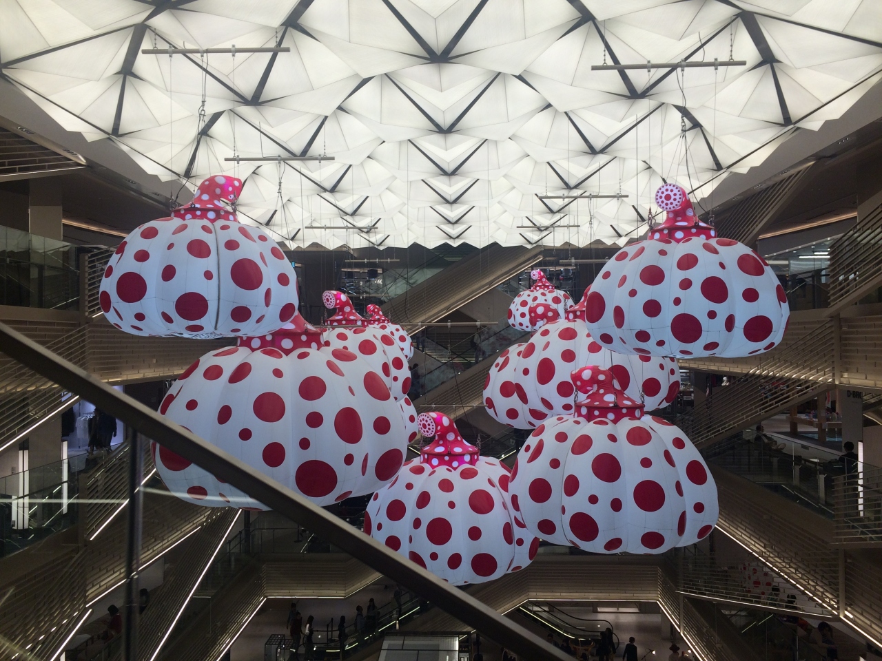 今月は10月。1階の入口入って大きな吹き抜けはハロウィーンをイメージする大きなカボチャが下がっていましたが、濃いピンクと白の水玉で可愛かったです。- 旅行時期