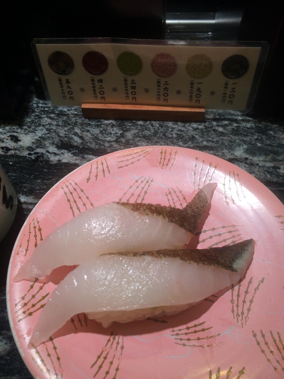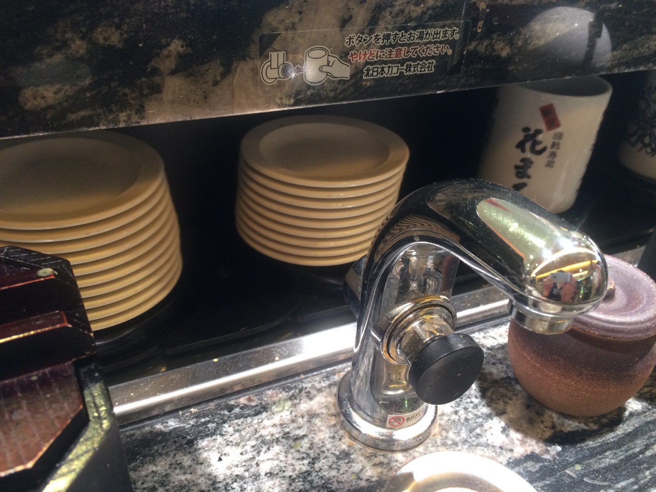 お茶とお皿は回転寿司の下で回転しているのでそこから取りました。