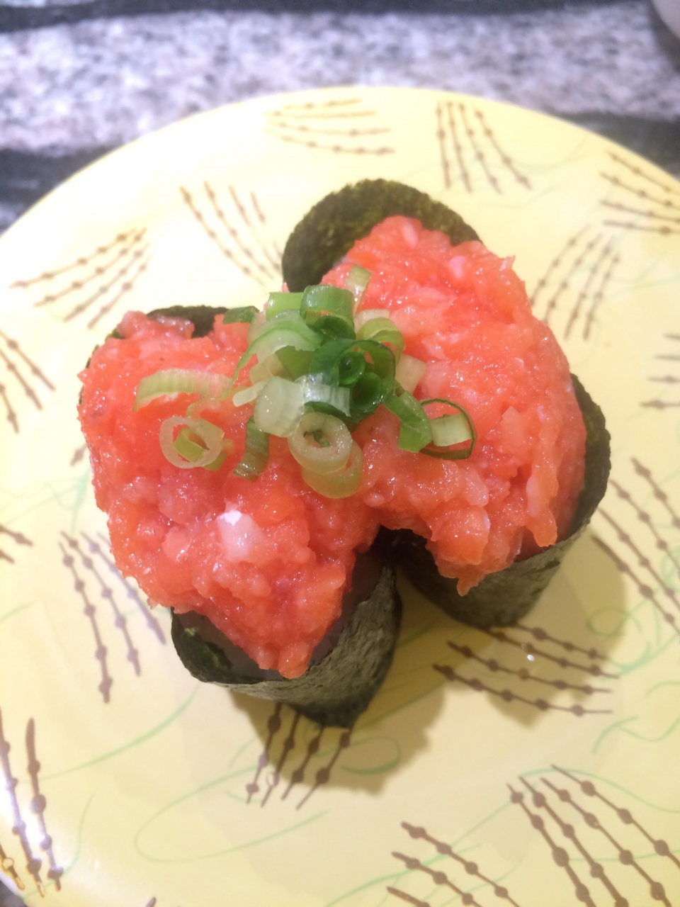 1つめは軍艦丸ごと。2つめはサーモンをより感じたかったので少しずつ食べました。