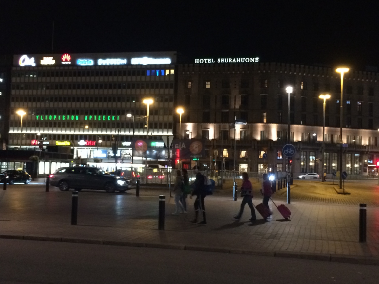 フィンエアの空港バスで夜中に到着しましたが、目の前にすぐホテルが見えました。