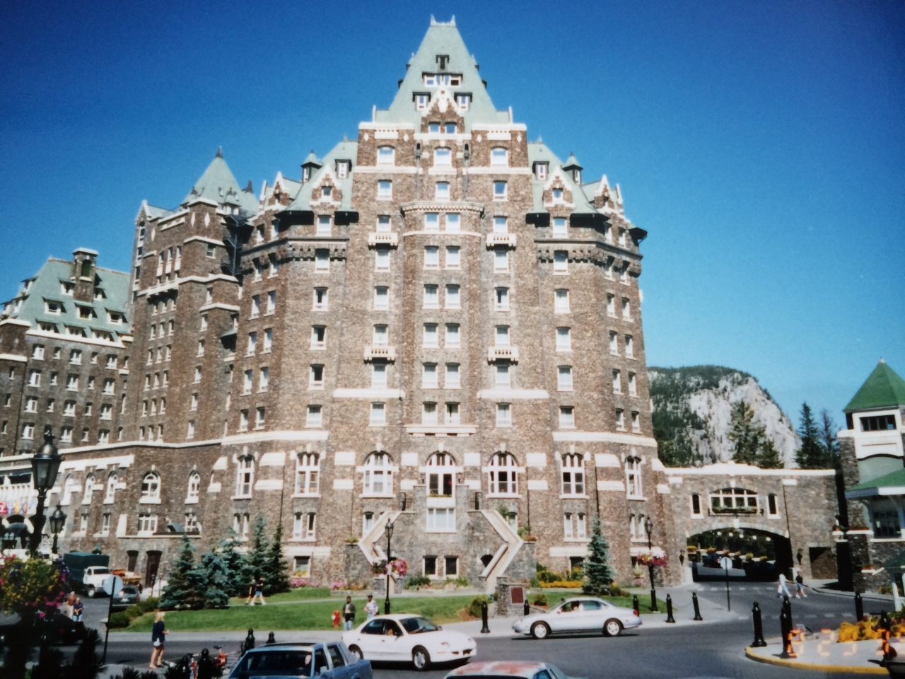 カナダの世界遺産カナディアンロッキー山脈観光の中心地バンフにあるカナダを代表するホテルの1つで、お城のようなホテルの外観は重厚感があり、青空とカナディアンロッキーの山々にとてもマッチしていました。