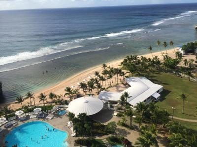 以前グアムに滞在した時はPICでしたが、その時からタモン湾の右端に見えるウェーブ型の大型ホテルの外観に魅かれていつか宿泊したいと思っていました。