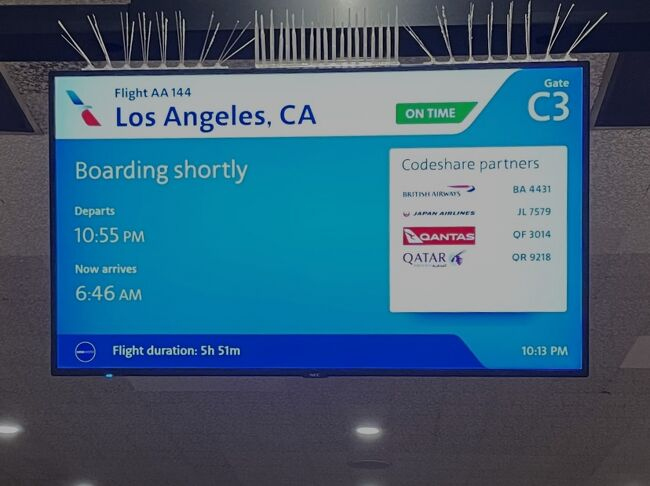 ホノルル発の夜便は寝ていたら到着、ロサンゼルスではアメリカン航空のフラッグシップラウンジが利用できてとても素晴らしい時間を過ごせました。