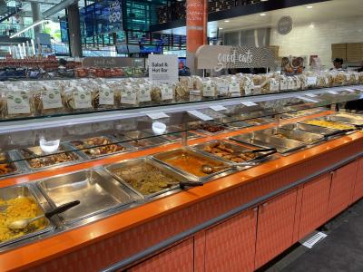 お惣菜コーナーは好きなだけ入れるタイプで、美味しそうなお料理が沢山並んでいました。ピザ屋もありました。