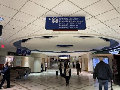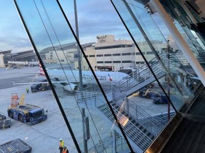 国内線:ターミナル5到着、連絡通路でターミナル4へ。ターミナル5に素敵なレストランあり♪ ターミナル4にアメリカン航空のフラッグシップラウンジあり♪