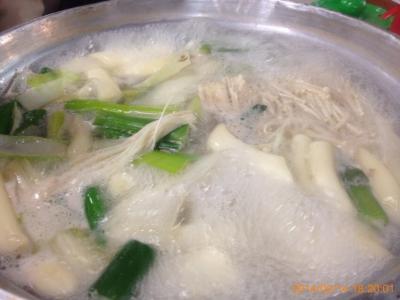 中には砂肝、トッポギ、エノキ等野菜が豊富でヘルシー。