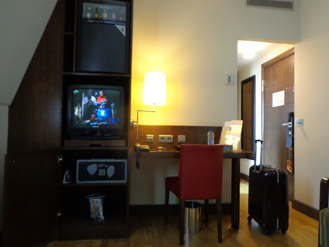 部屋:思った程狭くはなかった。4thfloorのシングルルーム(バスタブ付)利用。必要なものは一応揃っているし,部屋の掃除もきちんとなされていた。ただ,バスもシャワーも温度調節栓がついているにも関わらず調節が聞かず,熱湯風呂に入るはめに。まぁ熱湯風呂は以前にも経験あったのでどうにかなった。狭いシングルベッドは好みが分かれるところだが,私は広いベッドが苦手なので丁度良い感じだった。スプリング具合も上々。