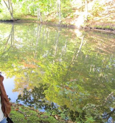 特に池に映りこんだ木々と本物の木々と空の色とが溶け合っているのが最高で、素晴しい景色を眺めることができました。