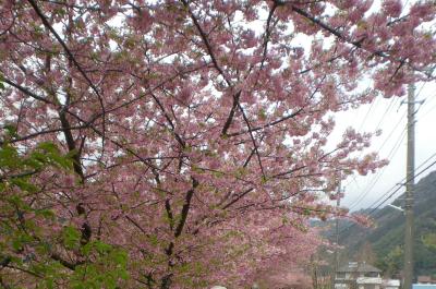 長い冬も終わってきれいに花をつけた河津桜は見事でしたが生憎の空模様だったのが残念でいした。曇っていて降ったり止んだりの天候で、晴れていたら桜がもっときれいだったのにとちょっと後悔。それでもいろいろなイベントやきれいな桜、そして温泉と十分に満喫することができました。