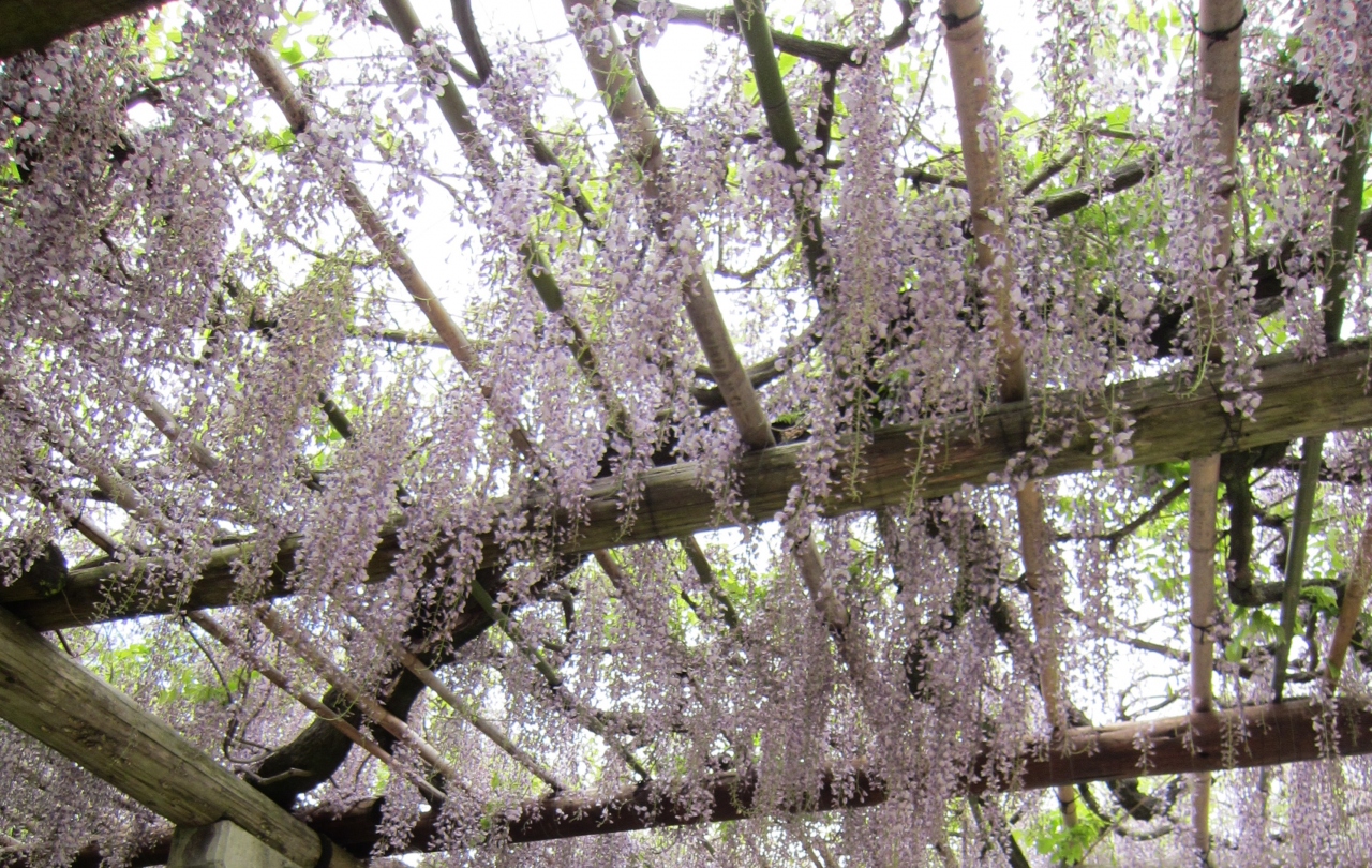 岡の真ん中あたりに休憩できるスポットがあってそこには見事な藤が咲いていてとてもきれいでした。