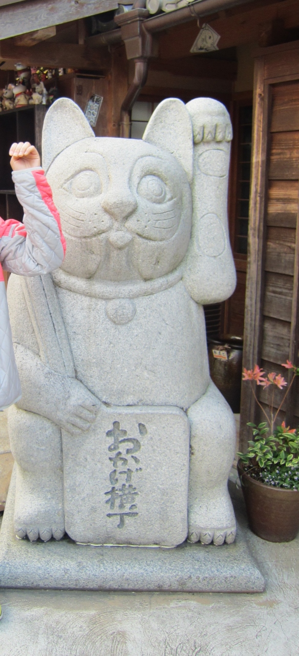 招き猫の置物はとてもかわいくてまねをして写真をとったりしました。ほかにもねっころがっているサルの置物などもありました。- 旅行時期