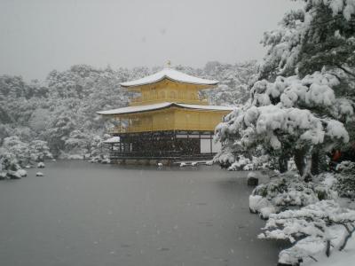 予想通りの大賑わいでカメラをかかえている人がたくさんいましたが、白く雪化粧したなか黄金に輝く金閣寺は素晴らしかったです。