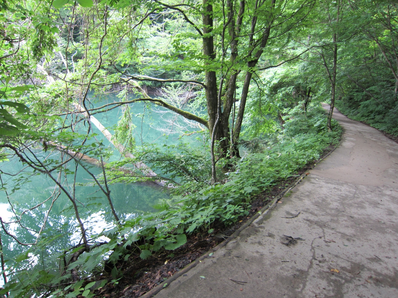ここらへん一帯には大小無数の池があって十二湖以上あるそうですが十二湖といわれているそうです。そんな中でも一番有名な青池は本当に神秘的な透明度の高いブルーの水をたたえていてとても美しかったです。水深がとても深いそうですが、湖面まで見渡すことができてぜんぜん深そうに見えませんでした。