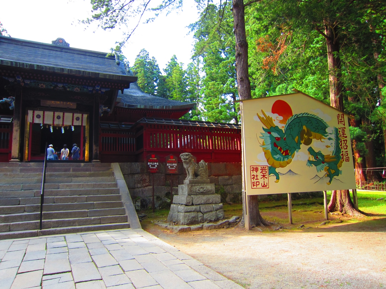 晴れていれば鳥居のから堂々とした岩木山が見れたようなのですが、生憎雲がかかっていて見ることができずにちょっと残念でした。でもその後の弘前観光中に雲の切れ目から岩木山を見ることができて、その姿はとても雄大ですばらしかったです。