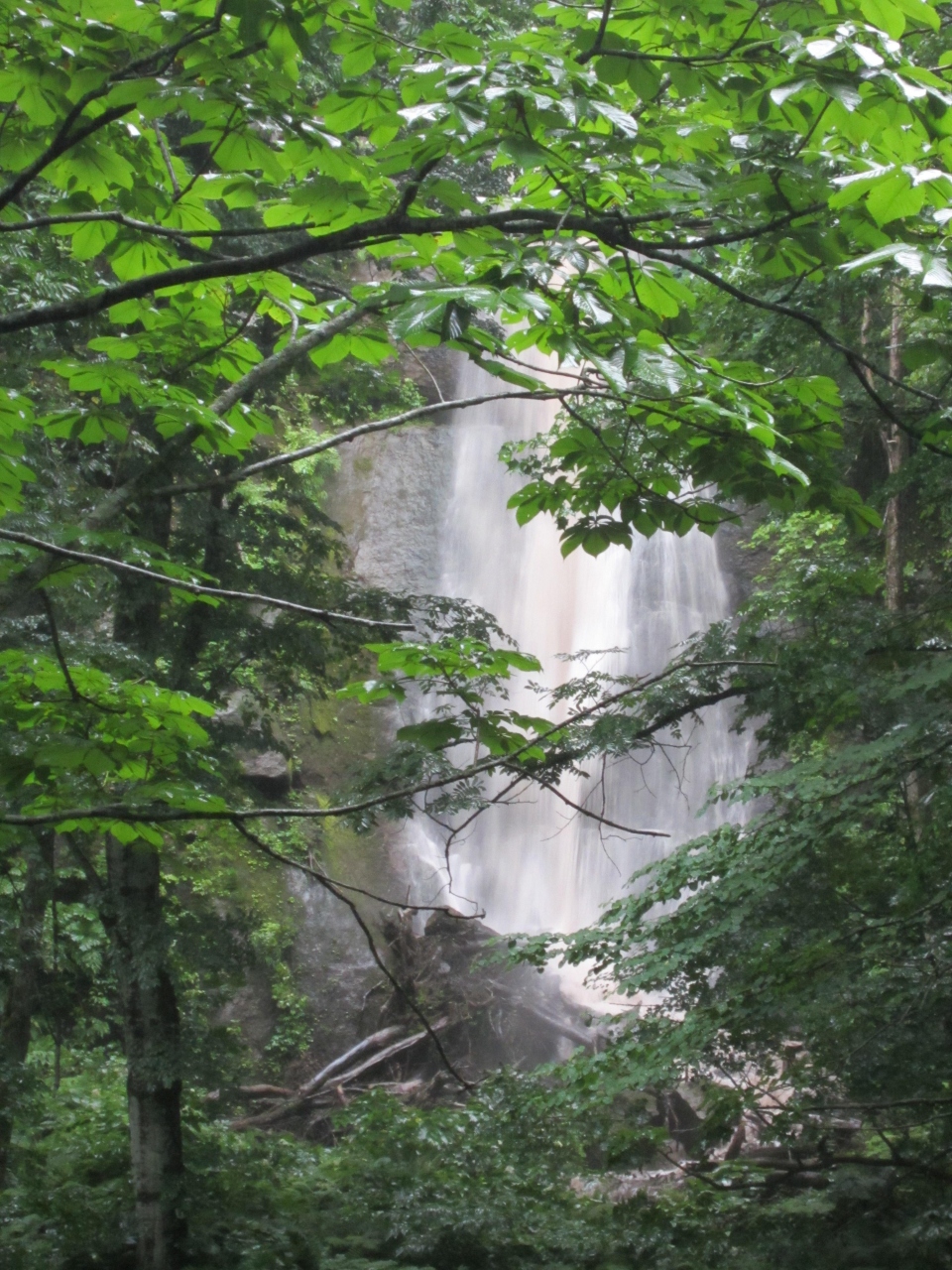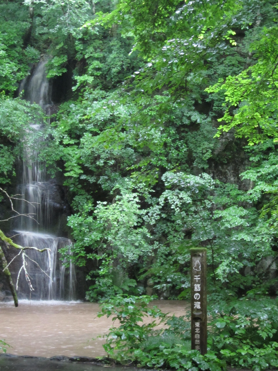 空から舞い降りた天女が垂らした白絹のように見えることから白布の滝と名づけられたそうですが、観光に行ったときには前日から降り続く大雨でそんなはかなげでたおやかな美しさはまったくありませんでした。