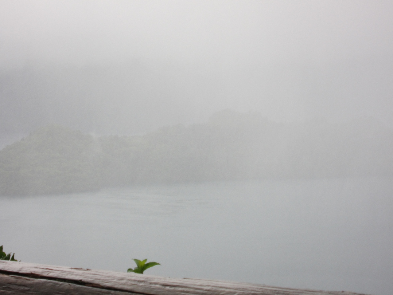 たくさんまわる予定だったのであまりゆっくりつかることはできなかったのですが、ほんのり青みを帯びた白濁の温泉はとても美しく、また気持ちよかったです。晴れた日の露天風呂の温泉、そして眺めはもっときれいなのだろうなぁとちょっと残念に思いました。