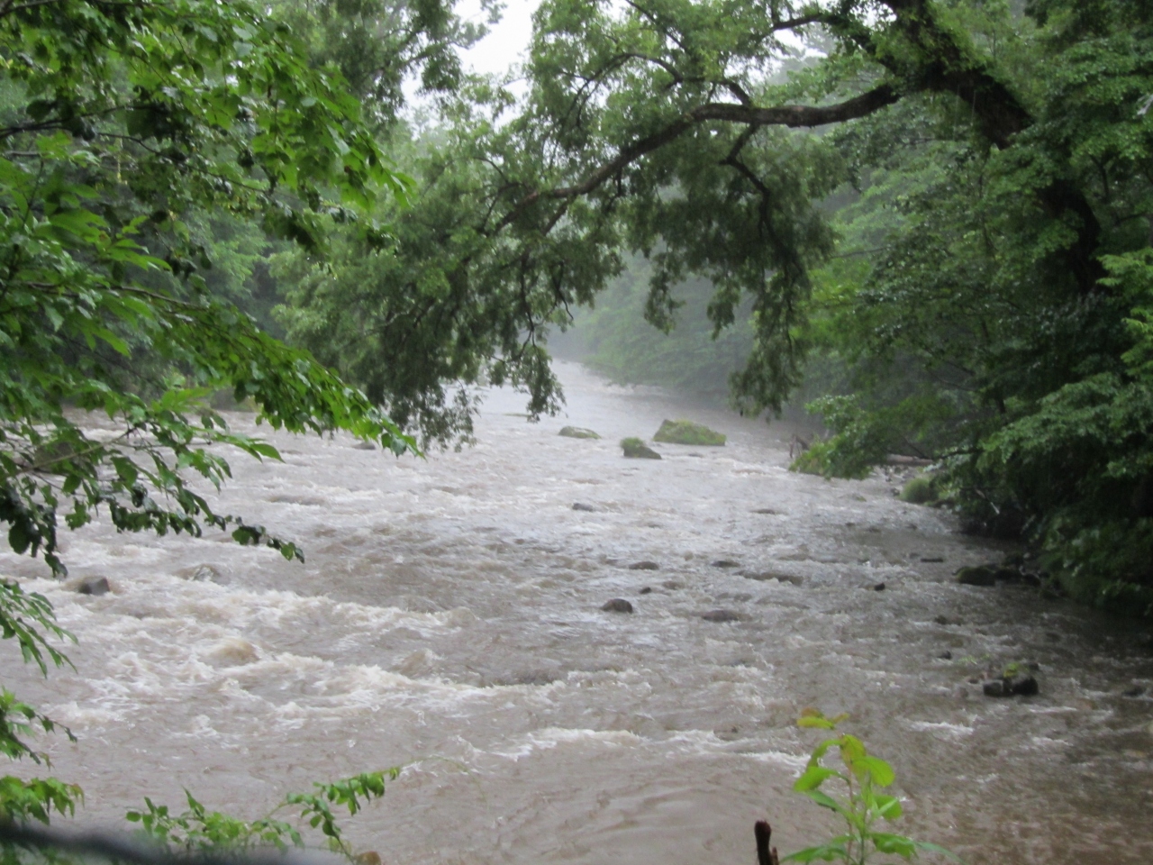 しかし前日から降り続く大雨で奥入瀬の水量が増加していて、流れも速く泥水で濁っていて、遊歩道まで押し寄せてきてしまうのではないかという勢いでした。