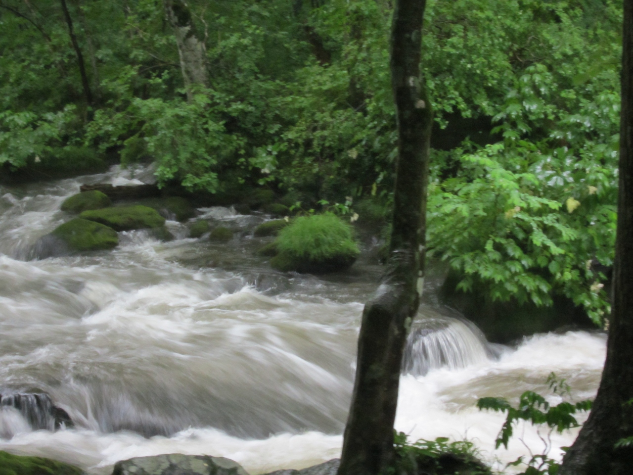 前日から降り続く雨で奥入瀬は泥水の濁流と化しており、奥入瀬の涼やかな渓流を期待していたのでちょっと残念でした。三乱の流れはというと他のところと変わらず濁流に飲み込まれていて、三乱どころではなく激しい流れとなっていました。