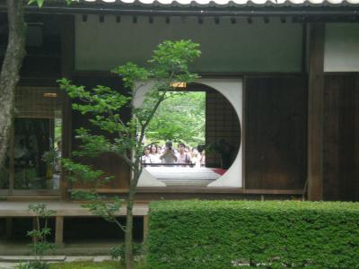 階段の両サイドに青や紫のアジサイが咲き乱れていてとても美しかったです。そして有名な丸窓から眺める外の庭園の景色にも期待をしていたのですが、人が多かったため庭というよりも人を見ているような感じになってしまってちょっと残念でした。やはりアジサイの時期は混むので別の時期に訪れたほうが観光しやすいですね。