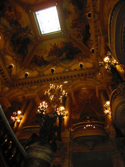舞台と舞台の天井に描かれたシャガールの美しい絵はとても美しかったです。こんなところでオペラを見れたらパリの貴族の気分に浸れるだろうなぁと思いました。