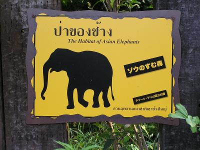 天王寺動物園のゾウ舎がタイ文字でいっぱいになっています。