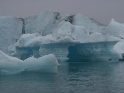 水陸両用のボートに乗り、おおきなライフジャケットを着けて出発です。かなり寒い中、雨も降っていましたが、氷河はブルーに光っていてとても美しかったです。途中で1000年以上も前の氷の味見もできて、とっても濃いい氷の味がしましたw