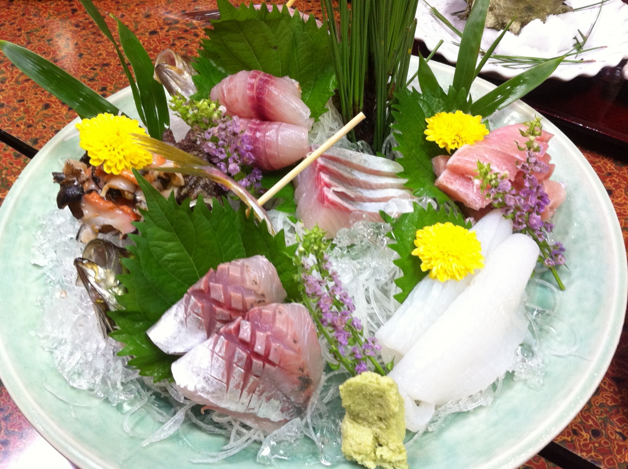 イカを丸ごと自分で手でちぎって魚にあげます。