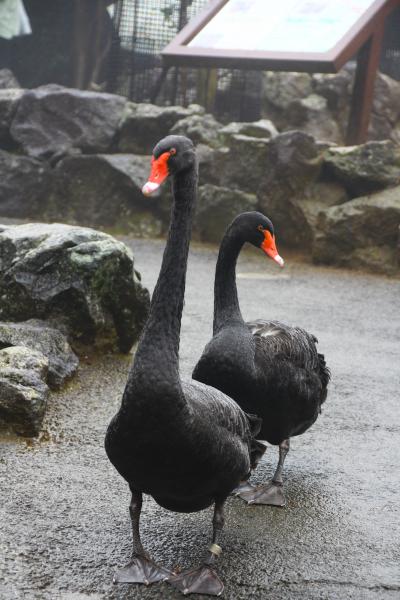 あまり期待せずに行ったのですが、まずカラフルなオウム、それからブラックスワンがよちよち歩いていたり、カンガルーなんかも動物はほとんど自由に歩き回っています。なのでとっても近くで動物を見たり、動物によっては触れたりできます。カピバラは大雨で雨宿りですぐ近くにはみられませんでしたが、顔の表情が分かるほどの距離では見ることができました。