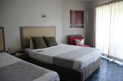 空港に近く無料送迎があったため利用しました。安い割には部屋もきれいで満足です。利用しませんでしたが、中庭にちゃんとプールがありました。歩いて行けるところにショッピングセンターレストランなどあったので街から遠くても徒歩で食事は可能です。ネットが有料でしたがちゃんと使えました。フィジーは無料のところがあまりないかも。総合的に満足です。