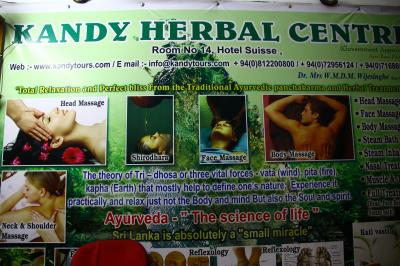 キャンディの街周辺でアーユルヴェーダが当日すぐに体験できるのはここしかないようでした。街の観光案内所で予約を入れてもらってからトゥクトゥクでキャンディ湖をぐるっと回って5~10分位でホテルに到着。シロダーラは7000ルピーでしたが、観光案内所の予約で10%引きとなり6300ルピーでした。施術中は気持ち良かったのですが、終了後頭を洗ってはいけないと言われて、私はこのホテルの宿泊ではなかったので仕方なくベトベト頭のまま出かけることになってしまいました。シロダーラをするならこのホテルの宿泊もしくはキャンディに宿泊するのがいいかと思います。シロダーラ以外にもいろんなコースがありました。- 旅行時期