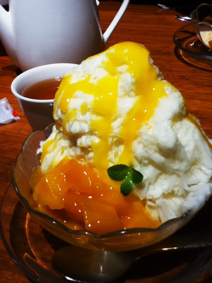 マンゴーミルクピン(かき氷)とマンゴープリンを注文しました。